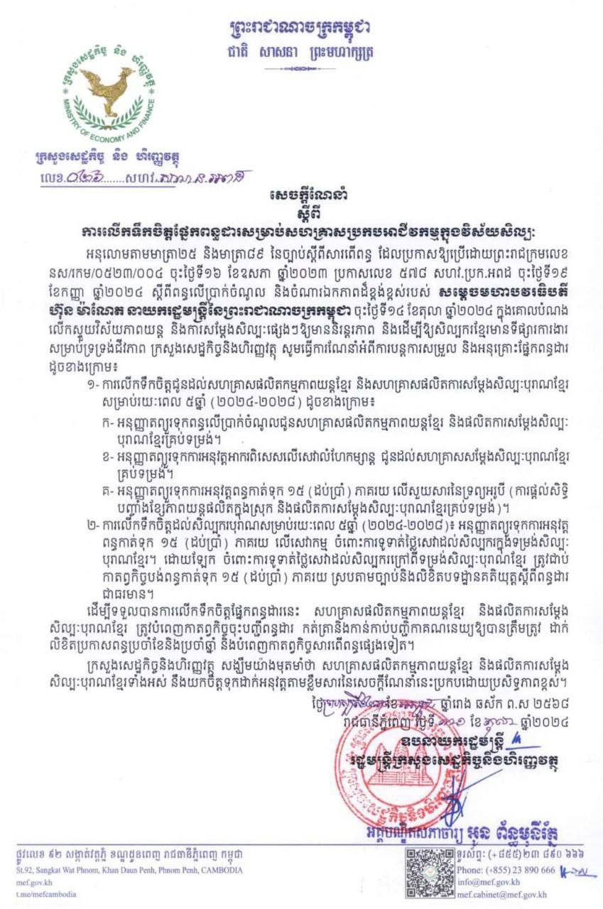 Instruction no. 026 on tax incentives for enterprises in the arts sector